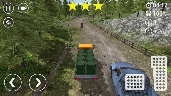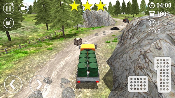 该游戏的基本玩法是以闯关方式进行,期间会有白天与黑夜场景交换,而黑夜让夜间的山区道路行驶变得更加简单,在上述基本操作了解之后,玩家在挑战每一关卡时,要合理控制车速,注意躲避道路上的障碍和艰难行进,在保证货物完整度良好的前提下,加速前往目的地,以便获取三星评级。