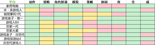 二、《游戏开发巨头》游戏年龄段、游戏类型、游戏平台的搭配