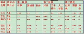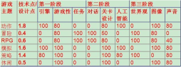 玩游戏的小伙伴们都知道,决定游戏销量最重要的就是评分,有时候虽然游戏比较好玩,但是评分很低的话,销量也不会好,现实中似乎不也是这样吗。其中游戏评分是一个隐藏参数,衡量的指标是设计和技术的分配。其实每个阶段都隐藏了设计点和技术点的数值,上万的数值技术你分配时候隐藏数值计算起来的结果。下面是每个阶段的设计点,技术点的具体隐藏比例: