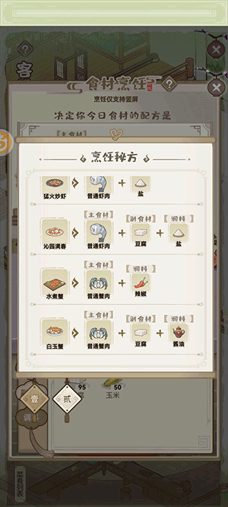 ⑤玉米炒蟹=蟹肉+玉米+盐