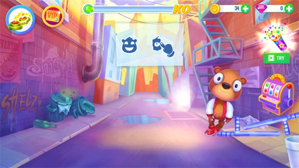 打开游戏,进入游戏后你可以随意攻击小熊。上方的绿色能量条填满就表示闯关成功。通关之后你会得到各类奖励。