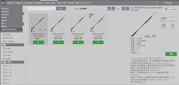 杆子讲完再来说说渔轮,一般来说渔轮没有过多要提的点,就是直柄杆搭配纺车轮,枪柄杆搭配水滴轮,如果你不知道如何配轮,就参照杆子详情里的