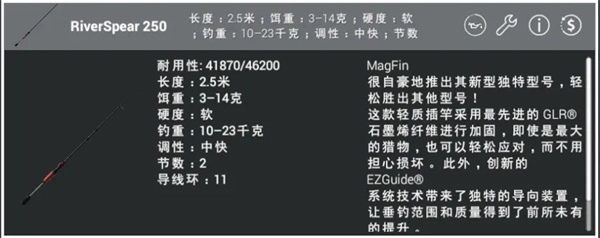 RiverSpear 250这把杆子是一把伴随蒙古地图出的新杆子,它的出现弥补了以往缺少小饵钓大鱼的杆子的缺陷,适合使用10g以内的假饵,拥有良好的抛投距离和钓重