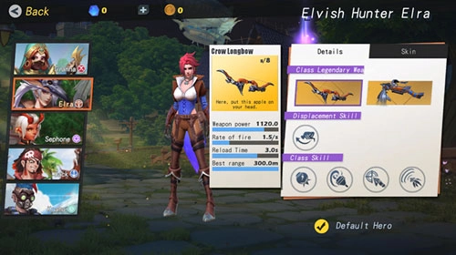 艾拉的两把传奇武器是追魂弩与乌鸦长弓。追魂弩属于中等距离武器,伤害和射速都比较普通,在此就不展开介绍了。而乌鸦长弓则截然不同,它是一把攻击距离可达300米的超高伤害武器,伤害值高达1120点——要知道人物自身的基础血量也才1200点,完全能做到一枪爆头,绝对是艾拉的首选武器,没有其他替代。