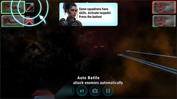 4、进入后,点击飞船图标可切换飞船,点击旁边的图标即可发起攻击。