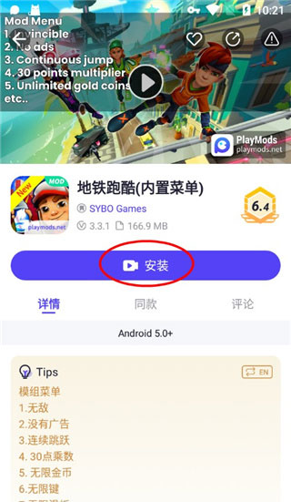 3、小编这里以地铁跑酷为例,在此界面中直接点击安装即可下载游戏。