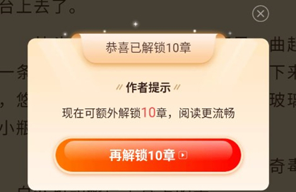 2、在看完广告之后就可以解锁10章内容,想要解锁更多可以继续观看广告或者开通会员