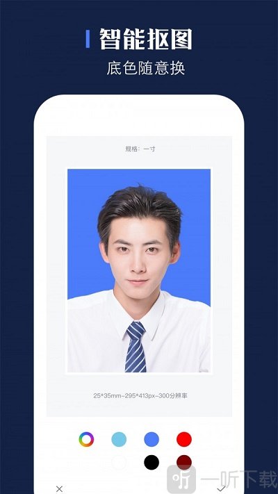 片进行编辑,选择照片的背景颜色,提供常见的红色,蓝色,白色等,智能识别背景,然后单击一下即可更改底部。
