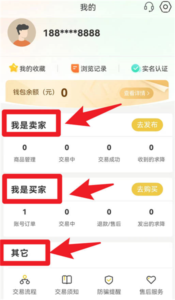 5、在“我的”页面,能够切换“我是卖家”与“我是买家”两种身份,并查看商品管理、交易订单以及其他相关服务。