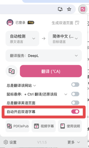 打开待翻译的视频,然后在沉浸式翻译面板里选择开启双语字幕功能。要是该功能没有生效,不妨尝试刷新页面,以便重新加载设置。
